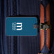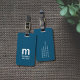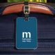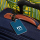 Elegant customisable blue luggage tag with bold monogram.