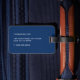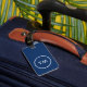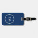 Elegant customisable blue luggage tag with white circle and bold monogram.
