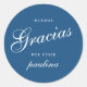 Simple Blue White Quinceañera Gracias Script Name Classic Round Sticker