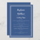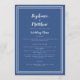 Simple, minimalist and elegant Wedding Menu features a contemporary design with a double frame border in crisp white on a trendy classic blue background. Traditional wording provides timeless yet modern sophistication. Personalise wedding design with your menu details in white lettering and script. The back of the card matches in solid classic blue.
