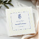 Italy inspired blue and yellow bridal shower paper napkins with navy blue hand drawn doodle lemons and yellow stripes. Personalize with name and event date.