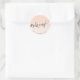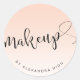 Elegant minimalist makeup sticker design which features your name and makeup text in a modern handwritten script lettering, gradient blush pink background.