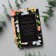 Simple Boho Black and Pink Floral Wedding Invitations - Elegant Botanical Design with Pink Script Typography. Announce your wedding in style with our modern boho invitations showcasing a captivating blend of blue and pink flowers, complemented by lush greenery on a striking black background. The elegant botanical design is accentuated by the use of pink script typography, adding a touch of romance and sophistication. With a minimalist aesthetic, these unique invitations perfectly balance modernity and natural beauty. Capture the essence of your special day with this exquisite combination of blue, pink, green, and elegant script typography, setting the stage for an unforgettable celebration.