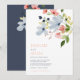 Simple Boho Blue and Pink Floral Wedding Invitation
