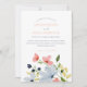 Simple Boho Blue and Pink Floral Wedding Invitation