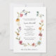 This simple and boho bridal shower invitation features a colourful wildflower wreath with a mix of pink, blue, orange, purple and green flowers and leaves. The illustration frames your black, classic text with accents of modern rustic script, all on a white background.