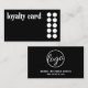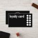 Modern business loyalty card featuring a simple and minimal design with bold typography in white over a black background. The colours may be changed to any colours you choose in the design editing tool. The back has your logo, business name and tagline. This contemporary loyalty card is great for any business, big or small.