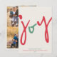 These minimalist 5" x 7" holiday greeting cards feature the greeting, "joy," in a large red and green fun font with the additional editable greeting, "Wishing you peace, love & joy this holiday season." Simply add your family name(s) and year. Add three of your favourite photos on the back of the card.