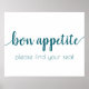 Simple Bon Appetite | Teal Aqua Any Event Sign
