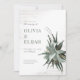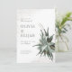 These vintage 5" x 7" wedding invitations feature a succulent bouquet with dried flower accents on a weathered texture background. Placeholders begin with, "Please join us for the marriage of," the wedding couple names, date and time, venue with address and, "reception to follow."