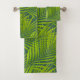 Simple Botanical Green Palm Leaves on Green Bath Towel Set