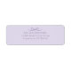 Elevate your holiday mailings with these cute and simple return address labels, featuring a delicate, minimalist purple bow graphic on a lavender background. These labels are fully customisable: easily personalise the template with your own name and address, and change the colour of the background, text, and bow to perfectly match your correspondence. © Kimbellished, LLC