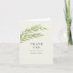This vertical, thank you card coordinates seamlessly with the Simple Branch wedding invitation suite and features two gently arching green branches above simple and elegant custom type. The inside of this folded card gives features a place to add your favourite photograph ample room for a thoughtful, hand-written note. The back of the card features a couple's monogram and date within an arched repeat of the branch motif.