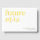 A modern bridal shower guest book featuring a simple white background that can be changed to any colour, the title "future mrs.", plus your name and date in real gold foil. This can be changed to rose gold or silver.