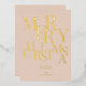 Simple Brown Elegant Minimalist Merry Christmas Gold Holiday Card.