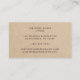 Rustic business card with a simple design featuring your name in a handwritten font and your title below in a serif font over a brown paper background. The backside has your contact information. This design is great for a boutique store, a thrift store, for handmade jewellery and more.