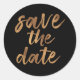 Simple Brush Script Black And Gold Save The Date Classic Round Sticker