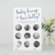Fun beer bellies vs. baby bumps photo baby shower or gender reveal party guessing game (with answers below) featuring a modern handlettered quote typography overlay.