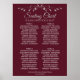 Make your wedding reception beautiful with this seating chart. Designed as a part of our Silver & Burgundy Elegant Wedding Suite, they feature a simple yet elegant design with grey text on a burgundy background with a silver faux foil floral border. This chart shows table assignments so your guests will have an easy time finding the right table.