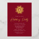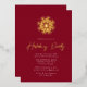 Modern foil holiday party invitations featuring a gold foil snowflake at the top of the design with a festive burgundy background. "Holiday Party" is displayed in a handwritten gold foil script. Personalize the foil snowflake holiday party invitations with your party details in white lettering.