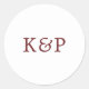 Simple Burgundy and White Monogram Wedding Classic Round Sticker