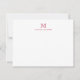Simple Classic Burgundy Red Modern Monogram Initial Note Card
