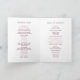 Simple folded wedding program featuring a modern yet elegant design. The cover has your two initial monogram along with your wedding details in white over a burgundy background. The inside has your wedding party on the left side and your order of ceremony on the right side. The backside has your personal thank you message. All design element colours may be changed in the design editing tool. A chic and stylish design that is great for a minimalist couple.