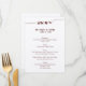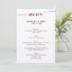 Simple burgundy wedding menu cards with customisable text, printed on felt ecru paper