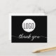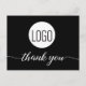 The postcard features a modern "thank you" script with long-tailed embellishments in white on black, adding an elegant touch to the design. The combination of simplicity and sophistication makes this postcard suitable for a wide range of businesses and industries.