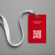 This design features a your logo here badge, a business company, photo barcode QR code, business personnel staff employee, name and title, branded, a simple minimalist, modern professional, with standard employee office supplies, a minimal simple red style.