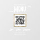 Simple text with business guest option. Qr code for food or service menu with website or social media connection. Like share subscribe