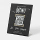 Simple text with business guest option. Qr code for food or service menu with website or social media connection. Like share subscribe