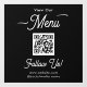 Simple text with business guest option. Qr code for food or service menu with website or social media connection. Like share subscribe