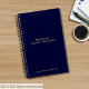 Take notes, jot down ideas, and keep your thoughts organised with our Simple Business Spiral Notebook. This notebook features your company name and website or custom text in timeless golden classic typography on the cover, set against a rich navy blue background. Inside, you'll find high-quality lined pages for all your business and personal notes. Make a statement and stay organised with this sophisticated spiral notebook, perfect for corporate use and showcasing your brand's identity.