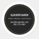 Simple minimalist business sticker on a black circle with a light gold border.