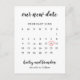 Modern Wedding Postponement Announcement Postcard featuring a calendar in black and white with the words, "our new date" and your names in a handwriting font and a red heart surrounding your date. The backside has your personal message and return address for easy mailing. This simple design is great for a minimalist couple to announce that their wedding has been postponed. DESIGN TIP: For a column that does not have a date in the first row (week), add a space before the first number. If you need any assistance with customising the calendar, please feel free to reach out to me via the "contact" button.