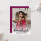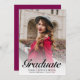 Simple calligraphy design and a custom photo. This graduation card design has announcement at the front and graduation party invitation at the back. You can change the photo and other details.
