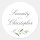 Simple calligraphy rustic greenery wedding favours classic round sticker