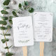 These fans were exactly as pictured. The quality is great. Perfect favor for a wedding!...I will make assembly a little easier by using a hot glue gun and finish them off with a ribbon. Beautifully printed. Crisp and clear text.