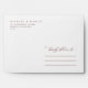Expectations met; I liked that I had the opportunity to include our address on the back of the envelope. This color matched very well with my save the date. The color was the same as shown above. I had our address labeled on the back of the envelope and the font/printing met my expectations.
