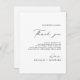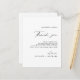 Say thank you to your guests with this Simple Calligraphy Script Thank You Reception Card. The classic chic script typography with minimalist black and white design makes it perfect for any wedding theme. The elegant calligraphy script adds a whimsical touch to the card, making it an ideal way to express your gratitude. You can easily customise this card by clicking on "Personalise" and entering your details. Take a look at the rest of the collection to see all the matching items available in this beautiful design. Perfect for a classic guest letter favour decor, this card is sure to impress your guests.