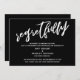 This suite's distinction is due to the modern, handwritten script font used for accent phrases. In the event that you need to let your guests know that your wedding has been cancelled, this card provides a bold, eye-catching option. In this piece, the hand-lettered script font was used to create a graphic simple depicting the word "regretfully". Use the template fields to add your personal details and make this unique, modern design your own. The solid background can be changed to any colour you prefer. Please reach out with any special requests or for customising assistance. // 100 //