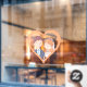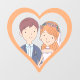This beautiful wedding window cling features a charming illustration of a bride and groom in a heart shape. The groom is depicted with short brown hair, a light complexion, and is wearing a navy blue suit jacket over a light blue collared shirt and a white tie. He has a small boutonniere pinned to his lapel.