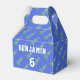 Simple Cartoon Rocket Blue Kid`s Birthday Favour Box. A pattern with simple blue rockets on a blue background. Personalise it with your name and age.