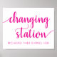 Playful 1980s inspired ultra bright bubblegum pink and fuchsia rose flourish calligraphy horizontal diaper changing designation area shower, party, or reception table signage featuring a fun, casual hand-lettered script. The classic design includes a modern handlettered quote typography overlay. The lovely font with a customizable background color makes it easy to fit any theme. For other colors or matching products, please visit the JustFharryn Zazzle store, or contact the designer, c/o fharryn@yahoo.com All rights reserved. #zazzlemade