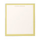 This notepad features your name in small spaced lowercase lettering at the top with a soft yellow chartreuse border all the way around the page. It's a clean, simple design that looks great on a desk — understated but personal. Add a name and it makes a lovely gift for anyone who appreciates nice stationery.