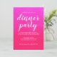 Simple and chic dinner party invitation features white stylish, elegant handwritten calligraphy and modern typography on a shiny bright pink background. Simply add your dinner party details. Exclusively designed for you by Happy Dolphin Studio. If you need any help or matching products please contact us through our store chat!