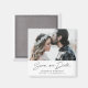 This simply chic custom photo wedding save the date magnet template features a simple design with a warm, minimalist flair. It features your first names under your favourite photo and a unique 'Save our Date' message in handwriting that we first wrote by hand and then adapted for this magnet. The 'Save our Date' text is in standard black, and your details below it are a slightly softened black. You might choose to change the colour of the names text to gold or another colour. The 'Save our Date' design element can't be altered. Customise this elegant modern wedding save the date fridge magnet template with your photo and your inspiration and make it uniquely yours!