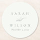 Simple Chic Elegant Script Black White Wedding Round Paper Coaster