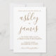 Simple and chic wedding invitation features gold elegant handwritten script calligraphy and modern typography on a white background. Simply add your wedding details. Exclusively designed for you by Happy Dolphin Studio. If you need any help or matching products please contact us at happydolphinstudio@outlook.com. We're happy to help you make your wedding the most beautiful day!